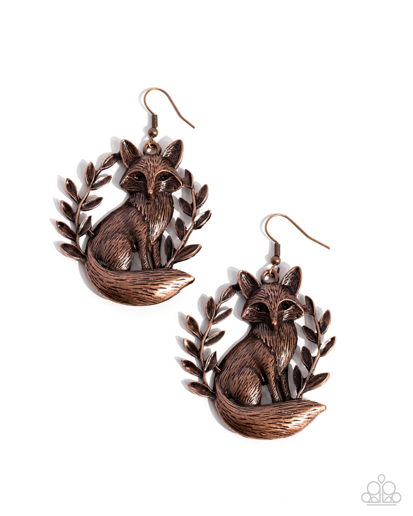 Perched beside silver laurel leaves, an intricately detailed silver fox stands out below the ear for a wildly whimsical lure. Earring attaches to a standard fishhook fitting.