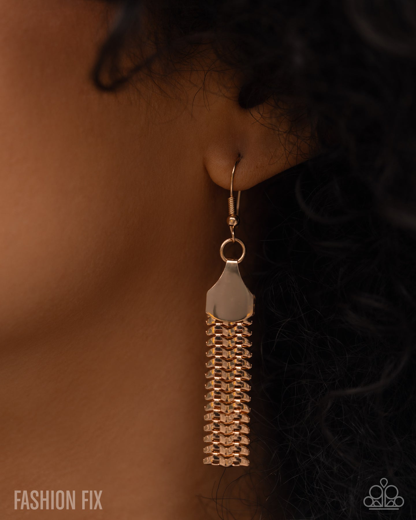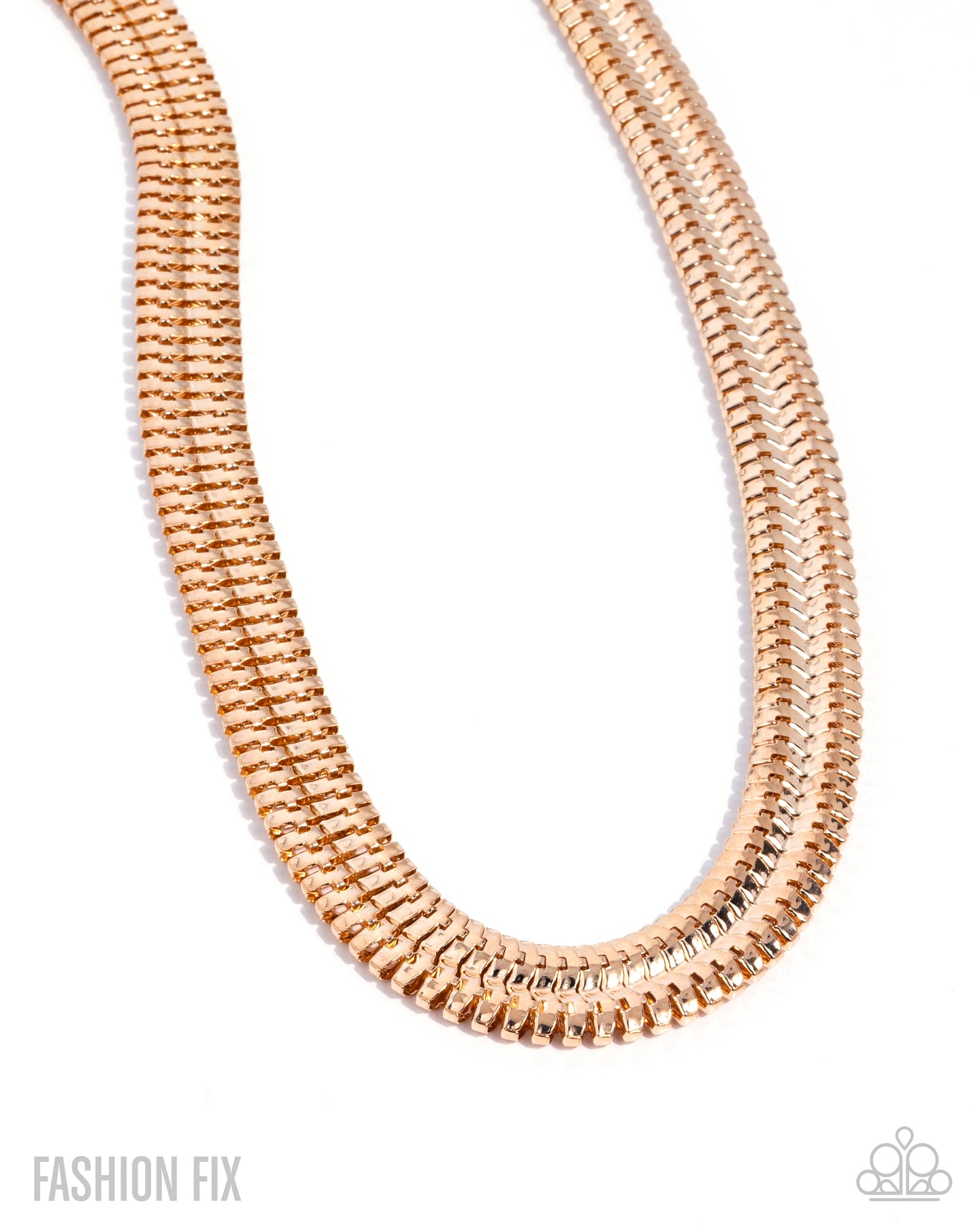 Reflecting light in every direction, a graduated, high-sheen herringbone gold chain weaves below the neckline together to create a bold and dynamic statement that effortlessly transitions from day to evening wear. Features an adjustable clasp closure.