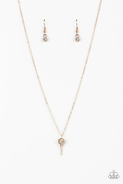 Encrusted in glassy white rhinestones, a dainty key pendant swings below the collar for a whimsical look. Features an adjustable clasp closure. Paparazzi Accessories