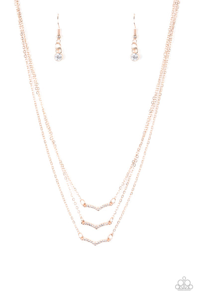 Encrusted in glassy white rhinestones, three dainty rose gold frames layer below the collar for a classic look. Features an adjustable clasp closure.