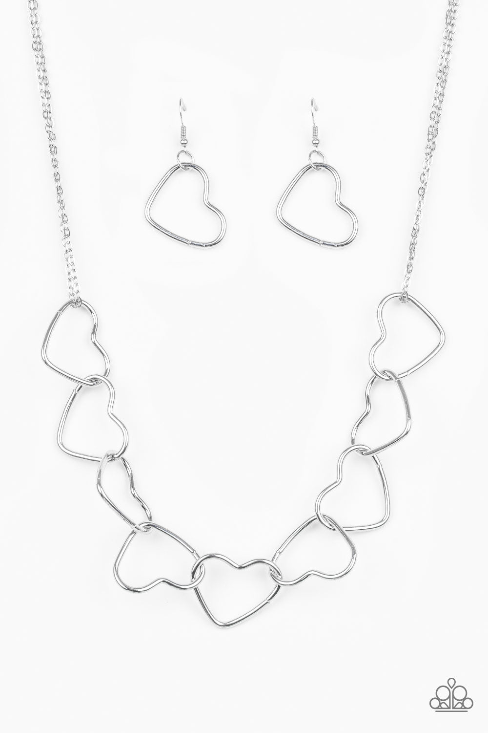 Airy silver heart silhouettes connect below the collar for a flirtatious look. Features an adjustable clasp closure.