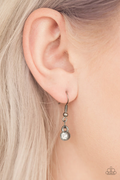 A smoky teardrop gem is pressed into a sleek silver frame, creating a bold 3-dimensional pendant below the collar. Features an adjustable clasp closure. Paparazzi Accessories