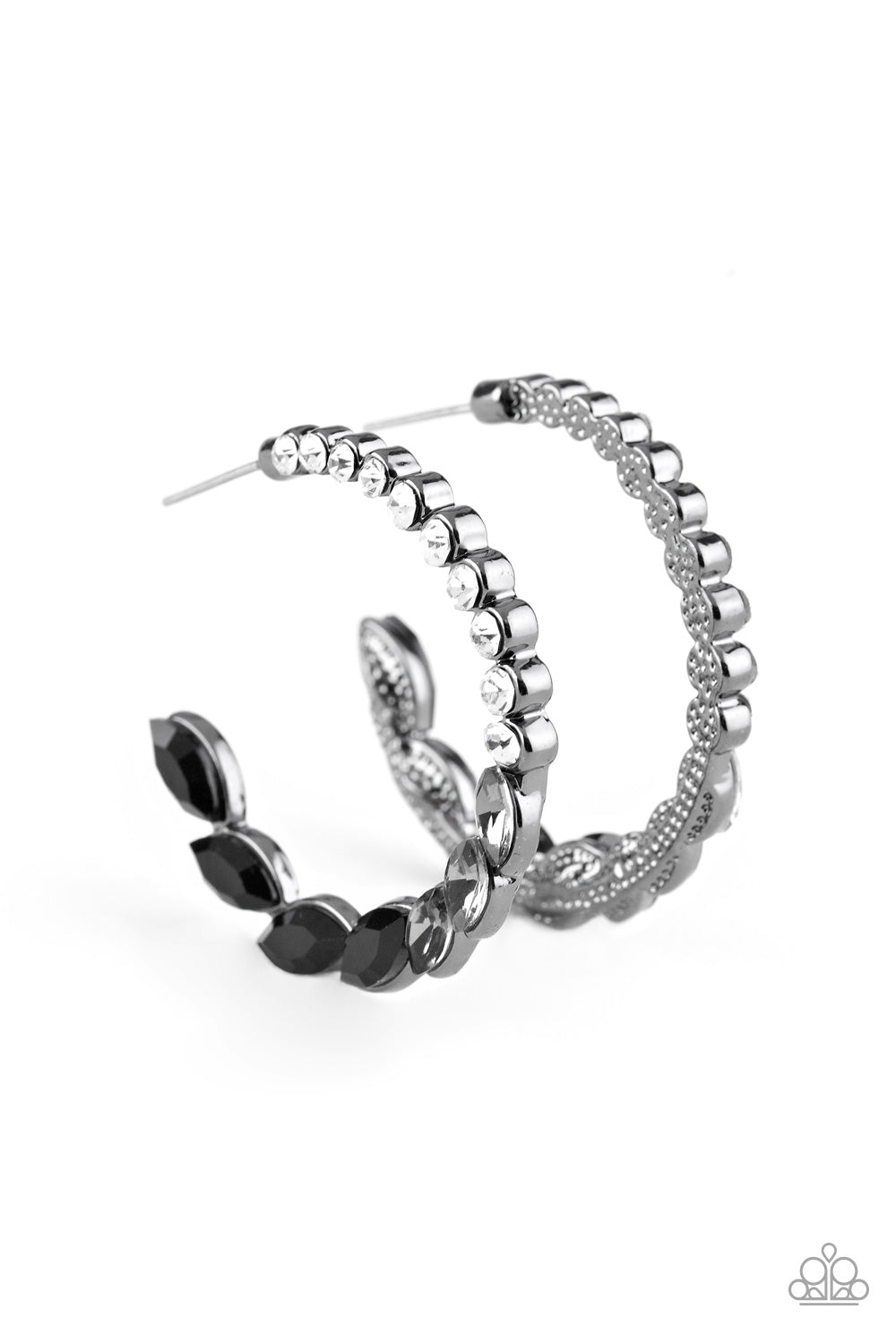 Gradually increasing in size, classic round rhinestones fade into smoky and black marquise cut rhinestones for a refined look. Earring attaches to a standard post fitting. Hoop measures 1" in diameter. Paparazzi Accessories