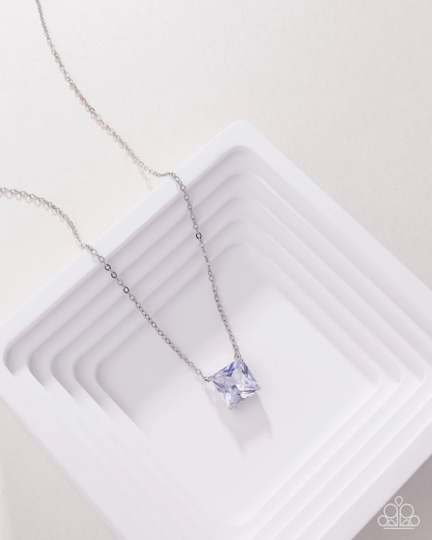 Featuring a timeless princess-style cut, a dramatic white gem is pressed into sleek silver-pronged fittings below the neckline on a classic chain for a statement-making shimmery look. Features an adjustable clasp closure.