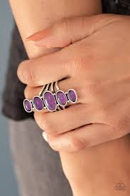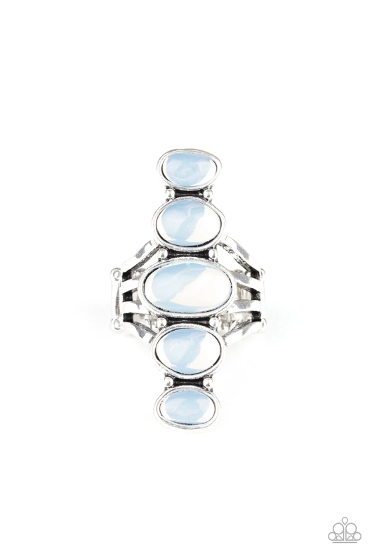 Featuring imperfect silver frames, asymmetrical white stones dramatically stack across the finger for an ethereal look. Features a stretchy band for a flexible fit.