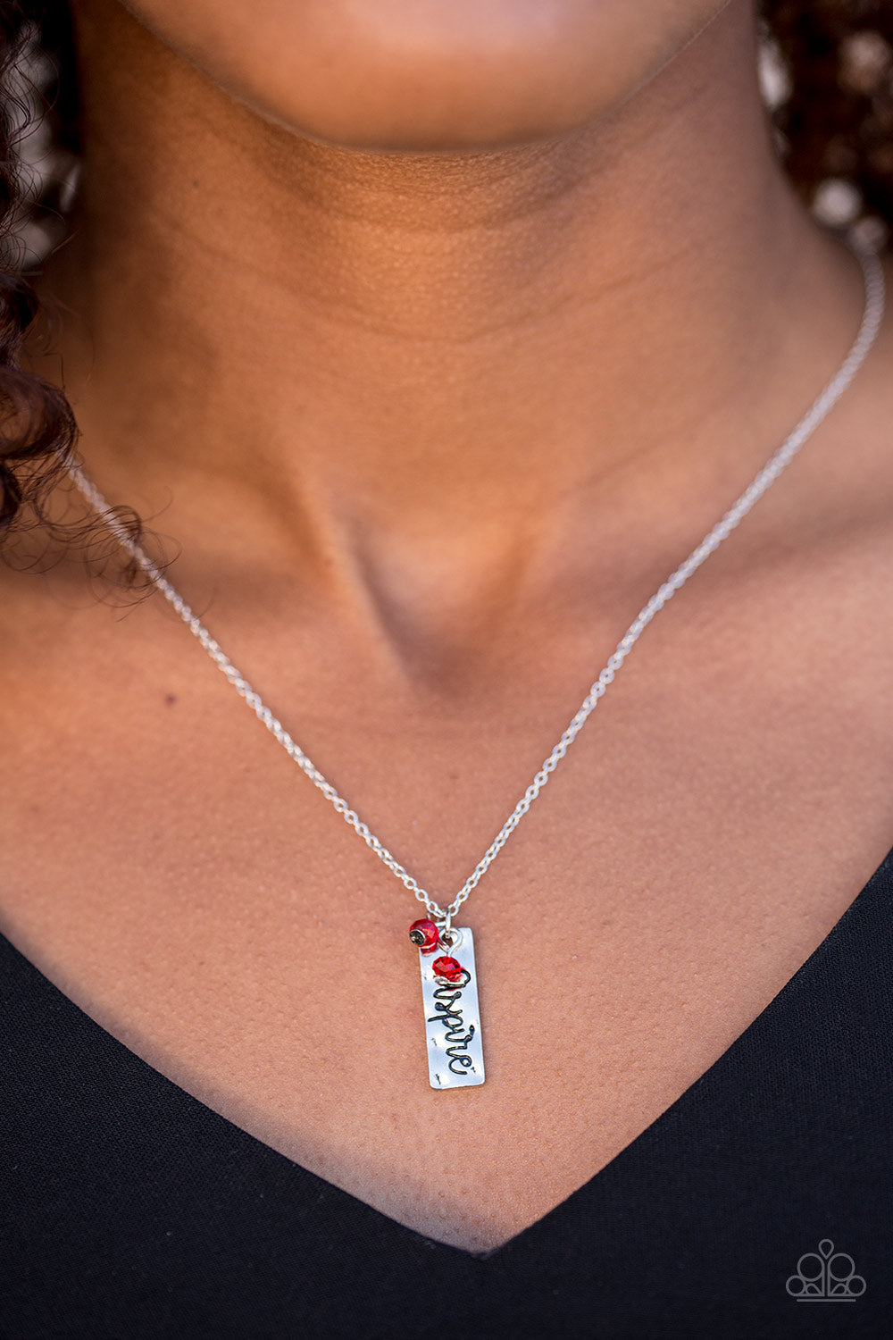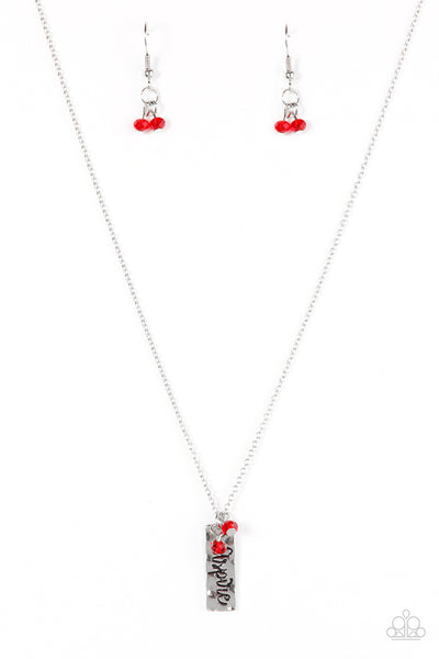 Delicately hammered in shimmery texture, a glistening silver plate is engraved in the word “Aspire,” creating a casual pendant. Dainty red beads join the whimsical pendant, adding fiery hints of color to the seasonal palette. Features an adjustable clasp closure.