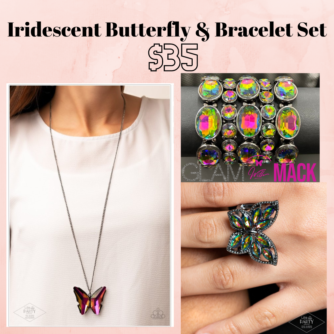 Iridescent Butterfly Necklace , ring & Bracelet Set