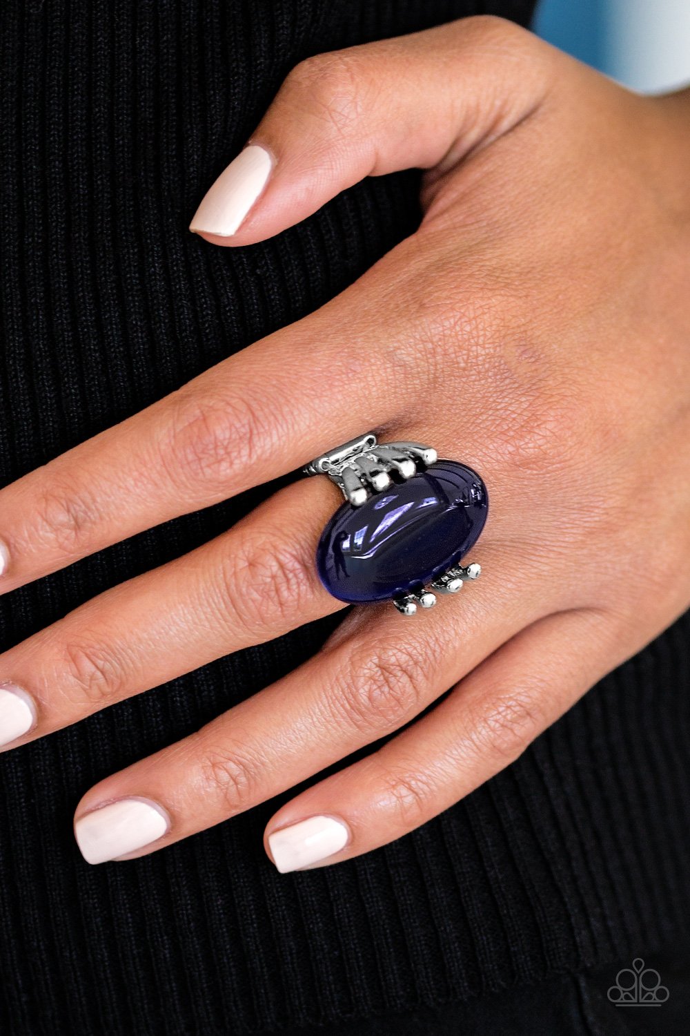 Glistening silver prongs curl around a pink moonstone, creating a bold centerpiece atop the finger. Features a stretchy band for a flexible fit. Sold as one individual ring.