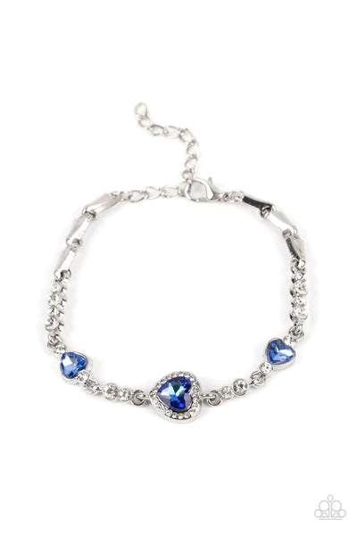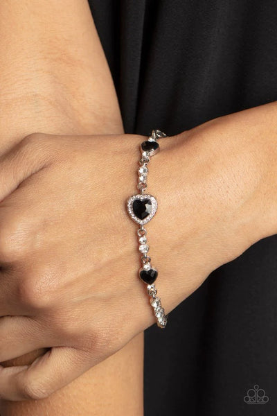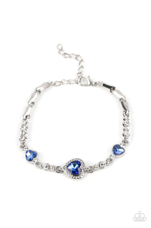 Solitaire sections of bubbly white rhinestones alternate with glittery Skydiver heart-shaped rhinestones around the wrist. The centermost heart is bordered in dainty white rhinestones, adding standout sparkle to the flirtatious centerpiece. Features an adjustable clasp closure.