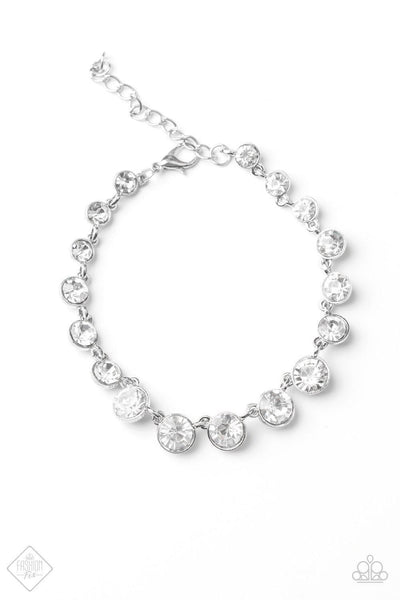 Gradually increasing in size towards the center, glittery white rhinestones link across the wrist for a timeless look. Features an adjustable clasp closure.