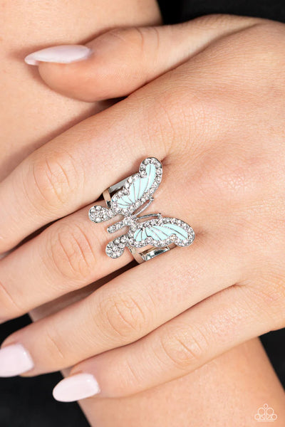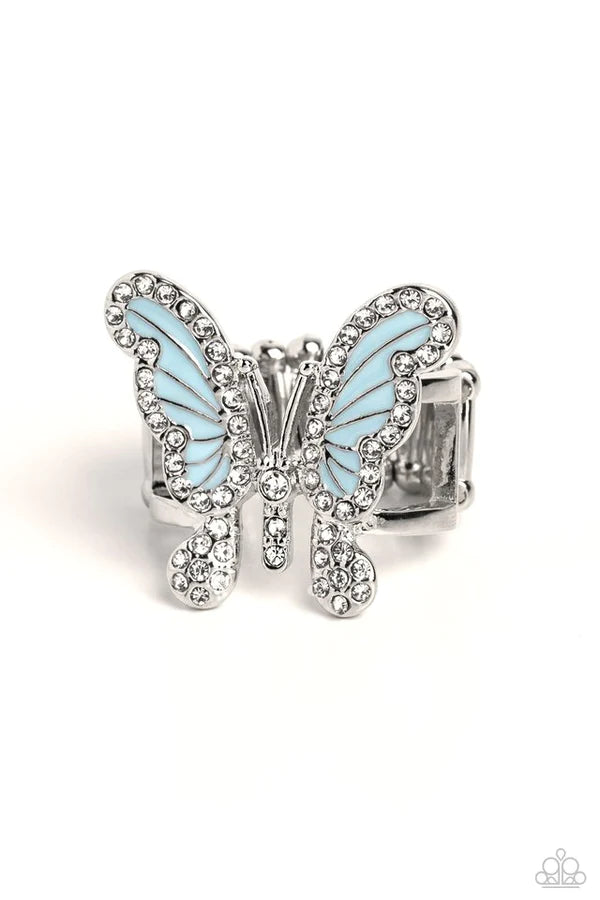 Sparkling with dainty, round white rhinestones, a silver butterfly with Skylight wings, fearlessly flutters atop the finger for a statement-making finish. Features a stretchy band for a flexible fit.
