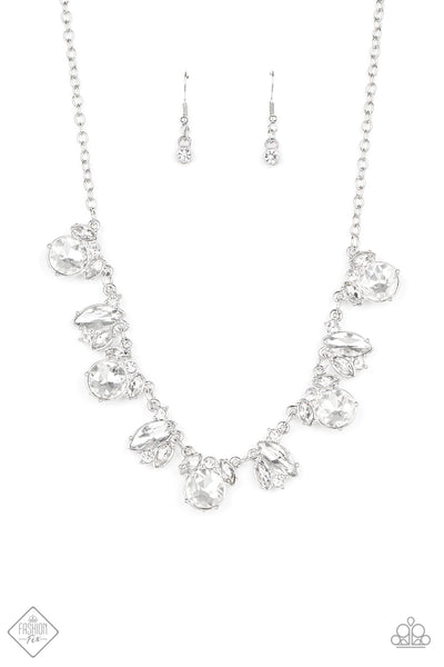 A timeless array of round and marquise-cut white rhinestones delicately link into a collection of sparkly clusters, creating a scattered shimmer below the collar. Features an adjustable clasp closure.