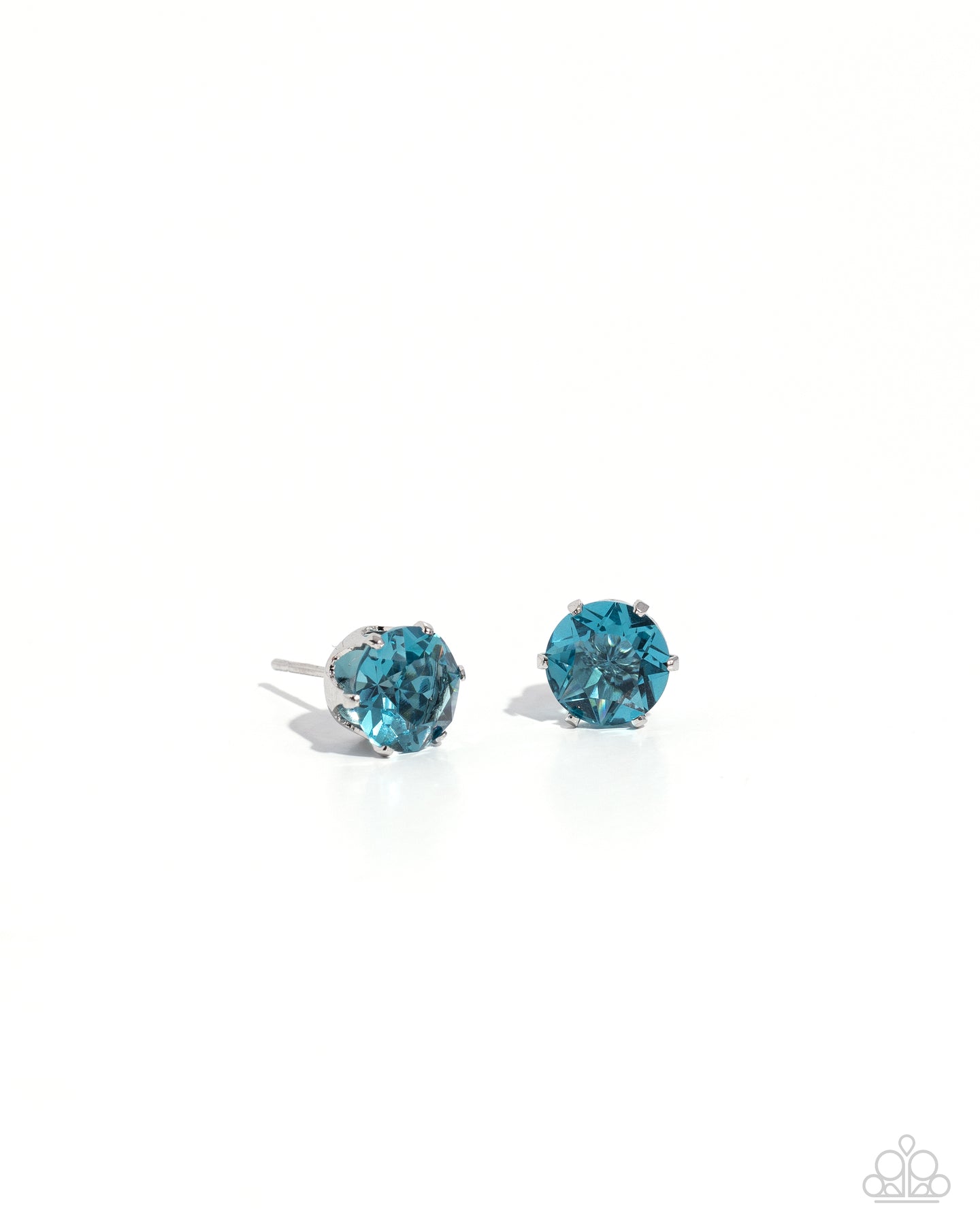 A sparkling turquoise rhinestone is nestled inside a classic silver frame for a beautiful birthstone-inspired display. Earring attaches to a standard post fitting.