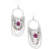 Mismatched silver chains, black rhinestones in square silver fittings, and a black faceted teardrop swing from the bottom of a shimmery silver hoop for an edgy look. Earring attaches to a standard fishhook fitting.