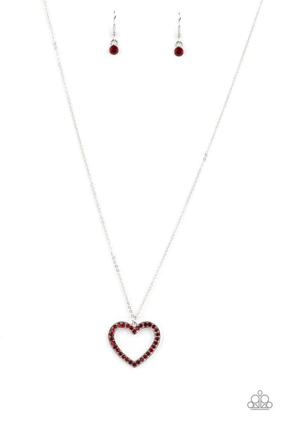 A silver heart-shaped silhouette is outlined with a border of siam rhinestones and suspended from the bottom of a long silver chain. The colorful rhinestones infuse the simple concept with irresistible sparkle, bringing a hint of glam to the charming design. Features an adjustable clasp closure.
