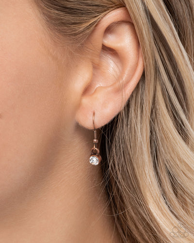A beautifully textured copper butterfly pendant, adorned with sparkling white rhinestones, swings from a twisted copper rope chain. The delicate etching in the butterfly's wings adds a natural touch, while the rhinestones bring a pop of shimmer. Features an adjustable clasp closure.