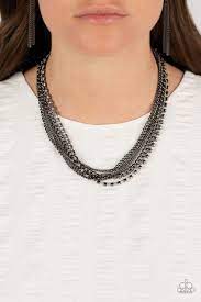 A mashup of gold and silver chains collides with a strand of sparkling white rhinestones encased in gold fittings. The contrast of gritty gold and silver finishes and shimmery accents creates a brilliant display of grunge and glitz as the strands layer across the chest in an epic finish. Features an adjustable clasp closure.