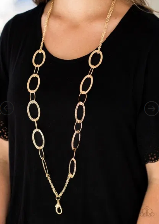 Glimmer Goals – Paparazzi – Gold Hammered Oval Hoop Lanyard Necklace