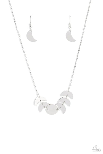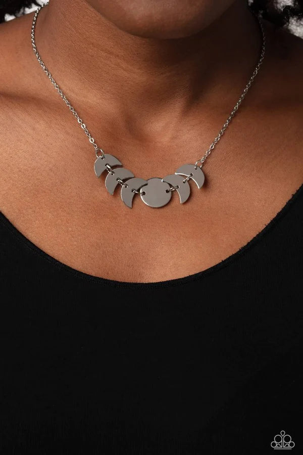 A stellar collection of silver discs, shaped to look like the phases of the moon coalesce below the collar for an out-of-this-world statement. Features an adjustable clasp closure.