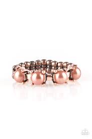 Pearly white beads are encrusted along a shimmery silver band for a refined look. Features a dainty stretchy band for a flexible fit.