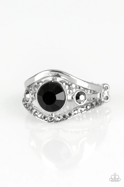 A white rhinestone encrusted band and glistening silver band wave around a radiating orange and white rhinestone center for a refined look. Features a dainty stretchy band for a flexible fit.