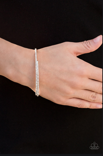 Dotted in dainty white rhinestones, a flexible gold wire coils around the wrist for a refined flair.