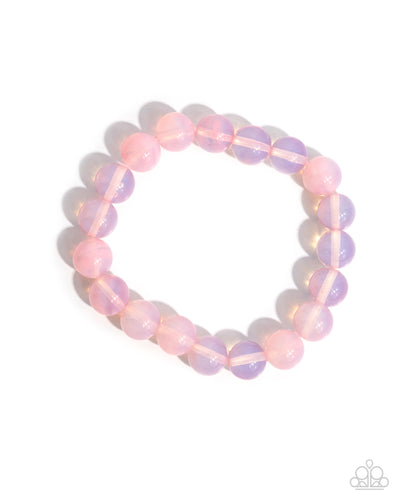 A collection of translucent baby pink acrylic beads is threaded along a stretchy band, creating a vibrant and colorful statement.