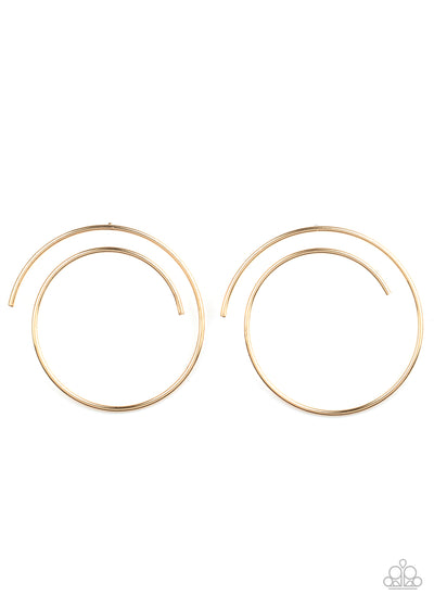 A glistening gold wire coils into a dizzying spiral shaped frame for a classic, minimalist inspired look. Earring attaches to a standard post fitting.