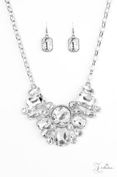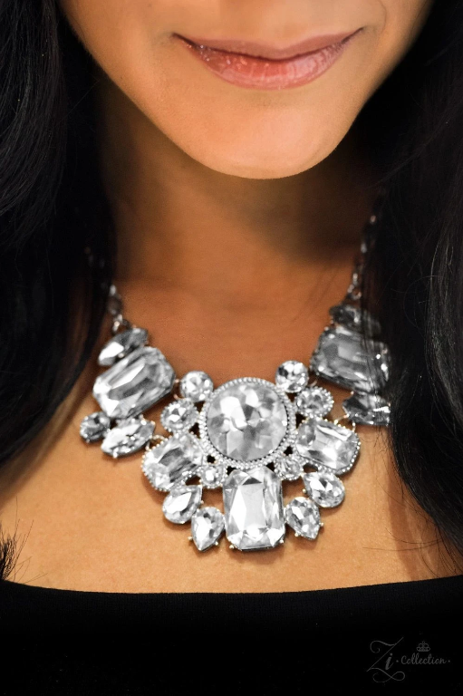 Featuring an array of round, marquise, teardrop, and elegant emerald style cuts, glittery white gems fan below the collar. Encased in sleek silver frames, the dramatic gems catch and reflect the light, casting blinding shimmer from every angle. Features an adjustable clasp closure.