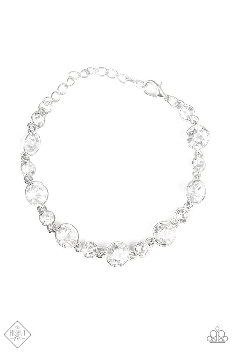 Small and oversized pink rhinestones alternate along the wrist, linking into a timeless centerpiece. Features an adjustable clasp closure.