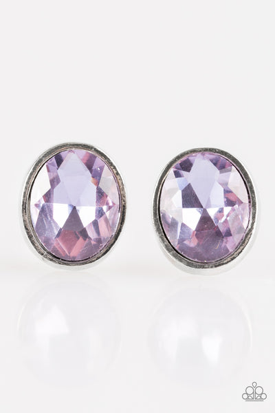 Featuring a tranquil oval shape, a glittery purple rhinestone is pressed into a sleek silver frame for a timeless look. Earring attaches to a standard post fitting.